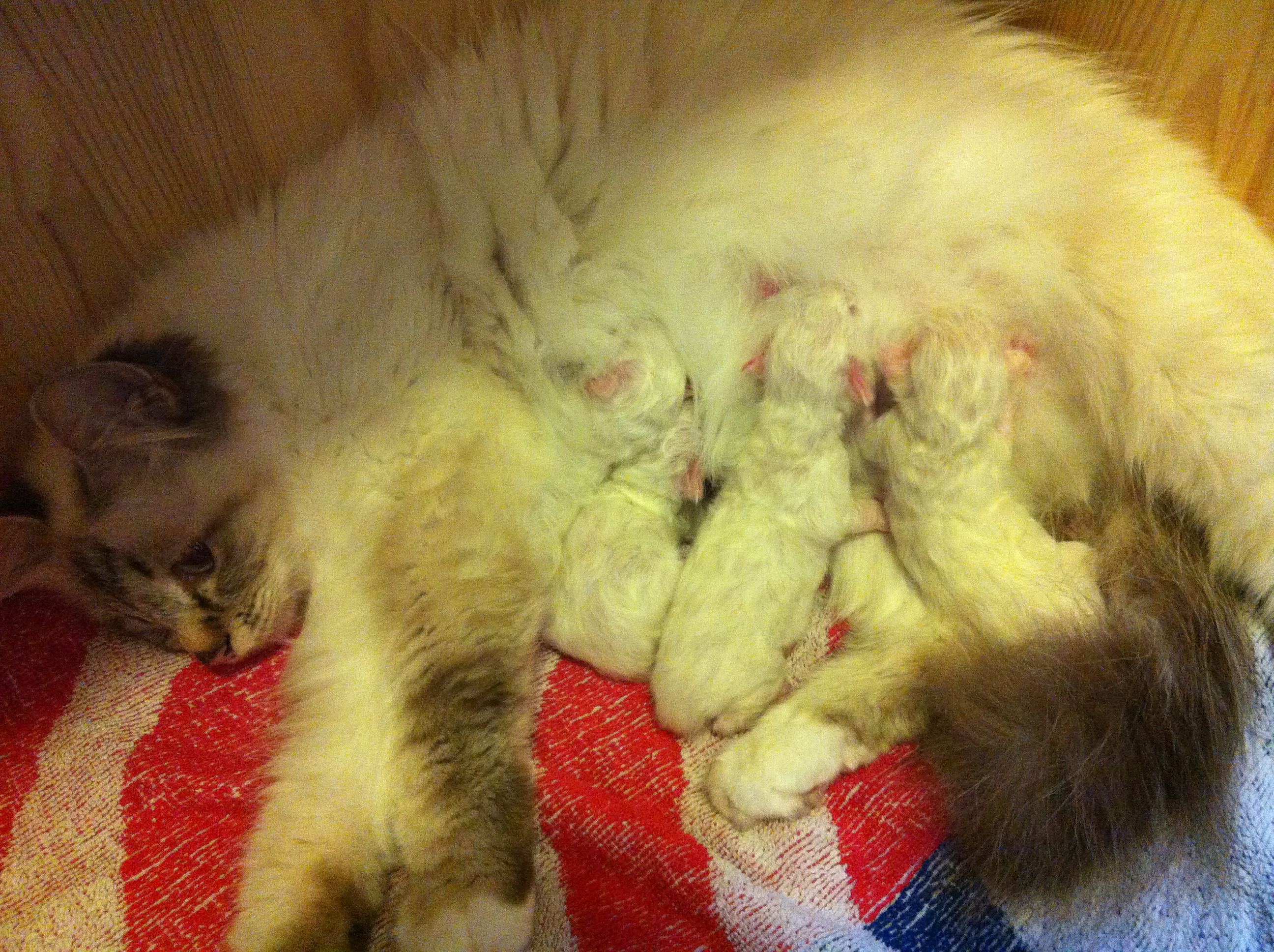 Det er 3 jenter og 1 gutt. Fødselsvekten var mellom 90 og 101g.